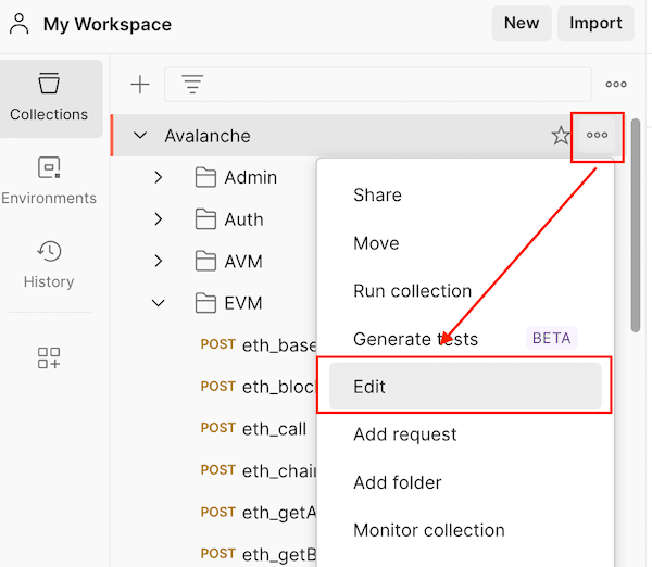 - Environment variables: An environment allows you to use a set of variables, which are called environment variables. Every collection can use an environment at a time, but the same environment can be used with multiple collections. This type of variables make the most sense to use with the Avalanche Postman collection, therefore an environment file with preset variables is provided